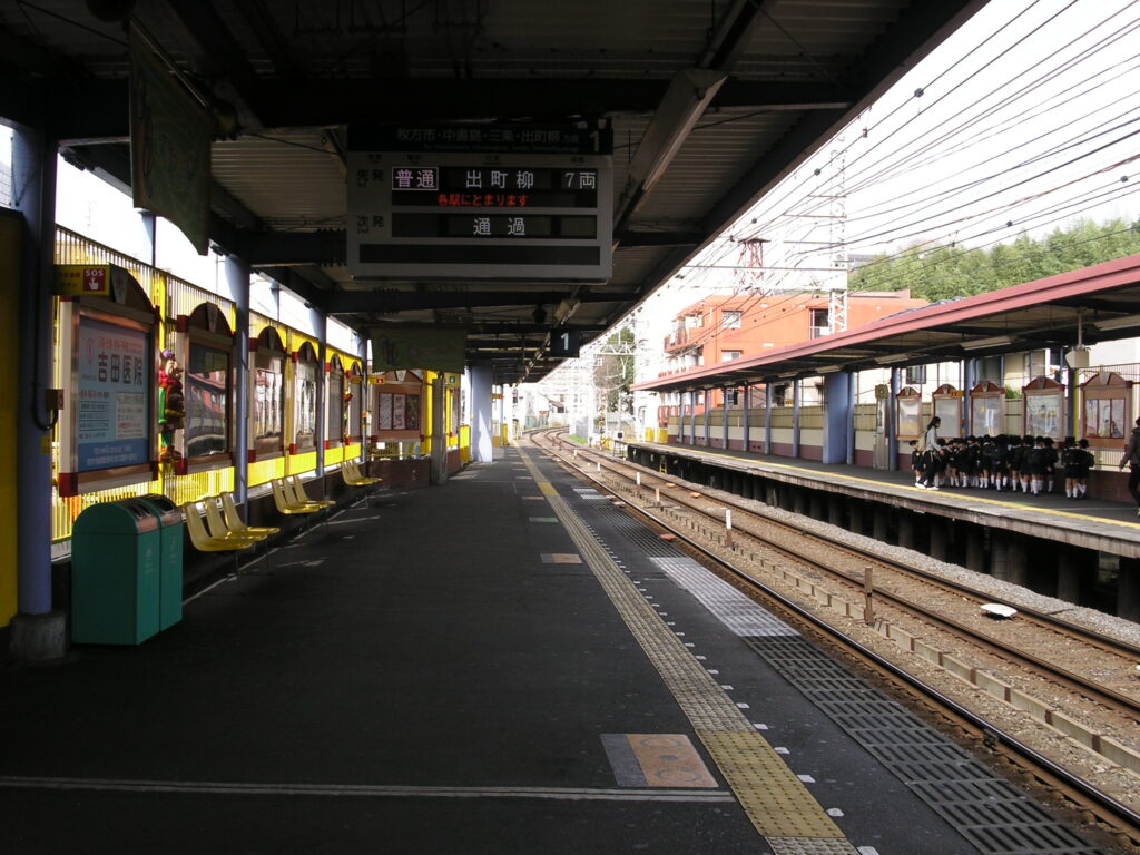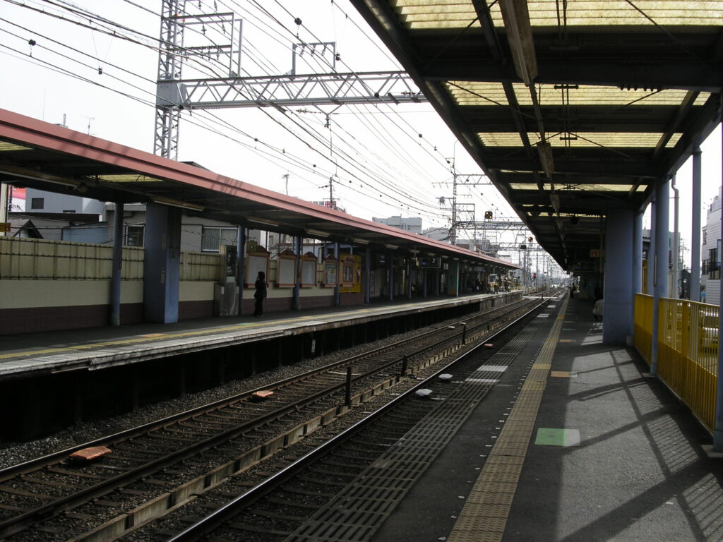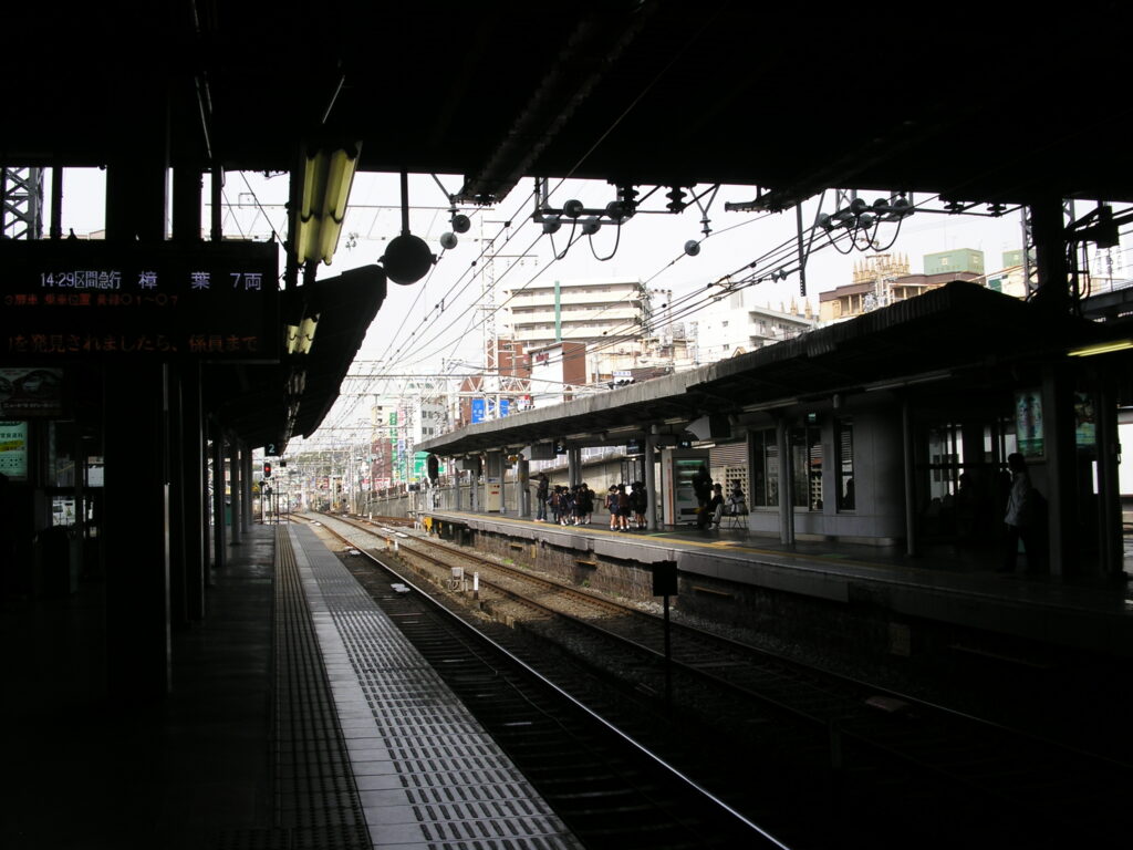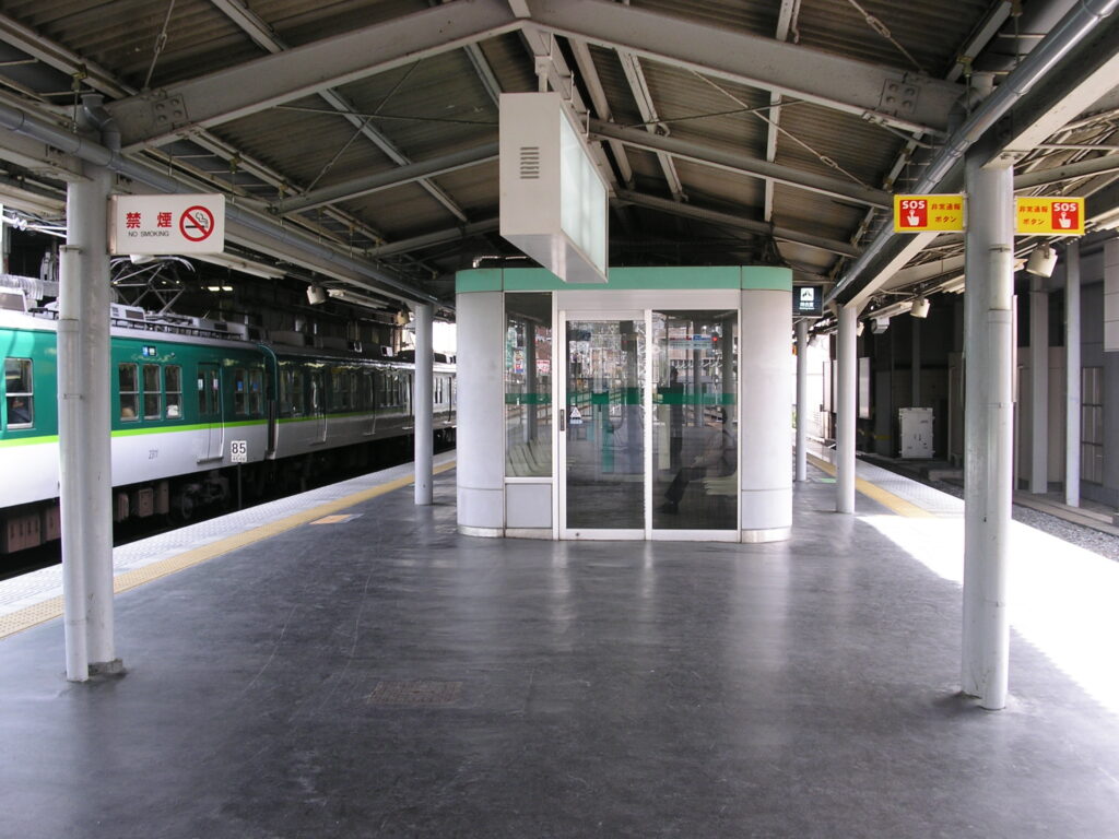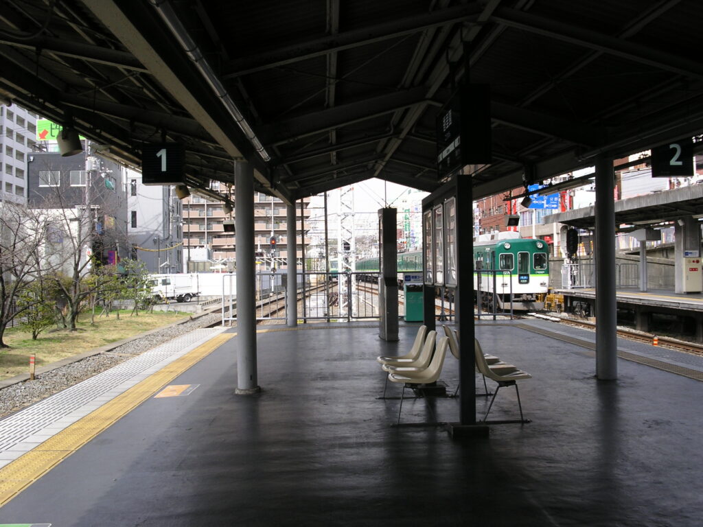 京阪本線画像集(2009年) part3 2025年10月7日 パノラマ風に撮ってる画像はだいたいマイクロフォーサーズ一眼(センササイズ小さい方が有利だが光量確保との兼ね合い考えたらこの辺りが最適)+広角レンズで撮ってひずみ補正したら上位互換の素材採れるはず。
